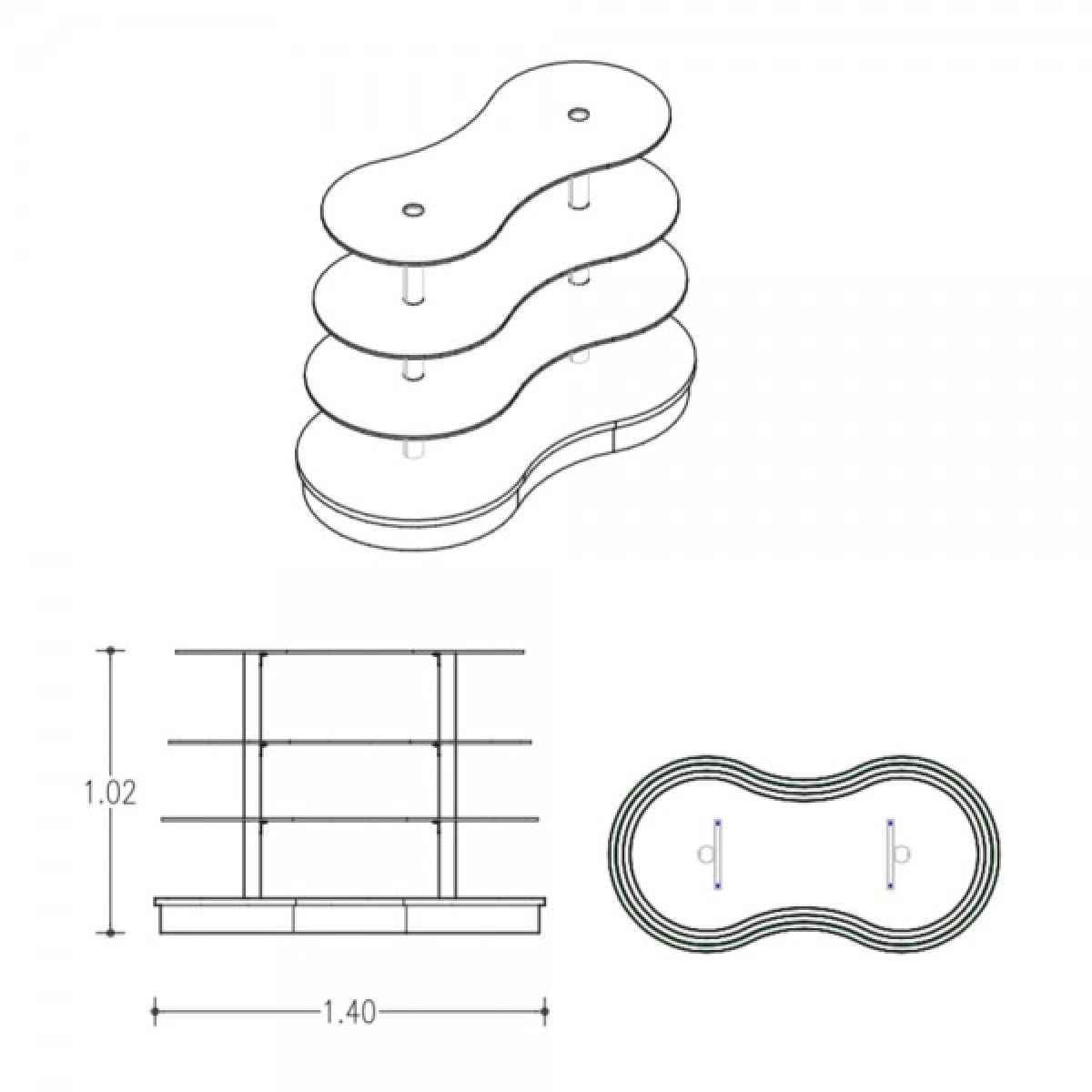 Η γόνδολα διαθέτει δύο μεταλλικούς ορθοστάτες κυκλικής διατομής που προσφέρουν σταθερότητα, ενώ τα τρία κρυστάλλινα ράφια πάχους 10mm με καμπυλοειδές σχήμα εξασφαλίζουν μοντέρνα αισθητική και άψογη προβολή προϊόντων. Η τροχήλατη βάση επιτρέπει εύκολη μετακίνηση, προσφέροντας ευελιξία στη διαρρύθμιση του χώρου.