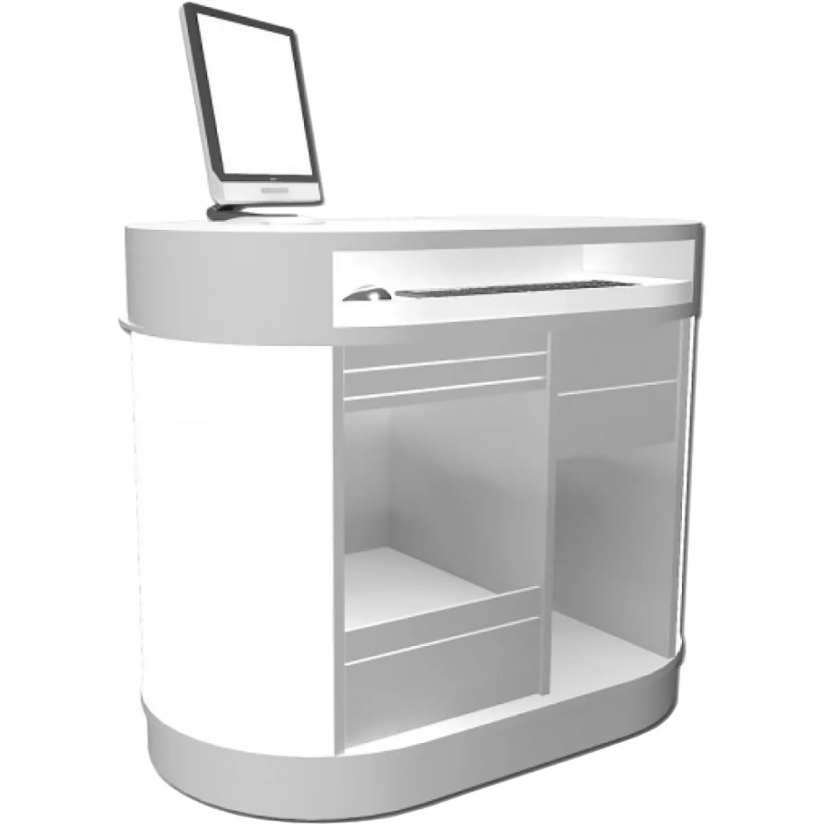 Επενδύστε στον πάγκο πωλήσεων Οβάλ και αναβαθμίστε την εικόνα και τη λειτουργικότητα του επαγγελματικού σας χώρου με έναν μοντέρνο, φωτιζόμενο και εξαιρετικά ποιοτικό πάγκο.