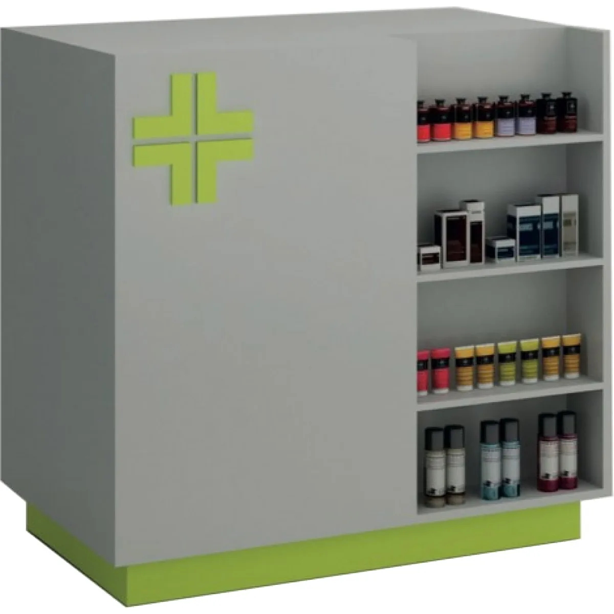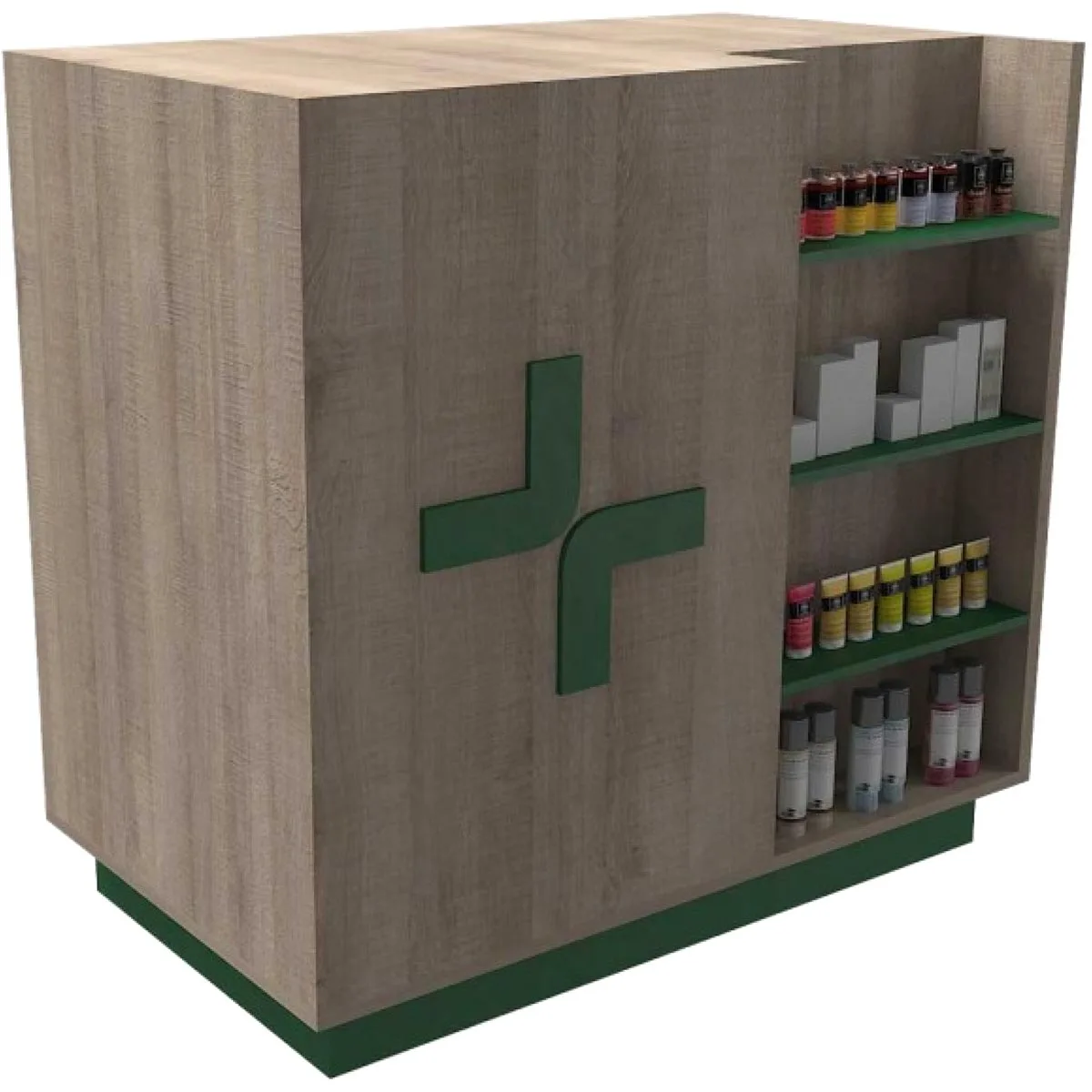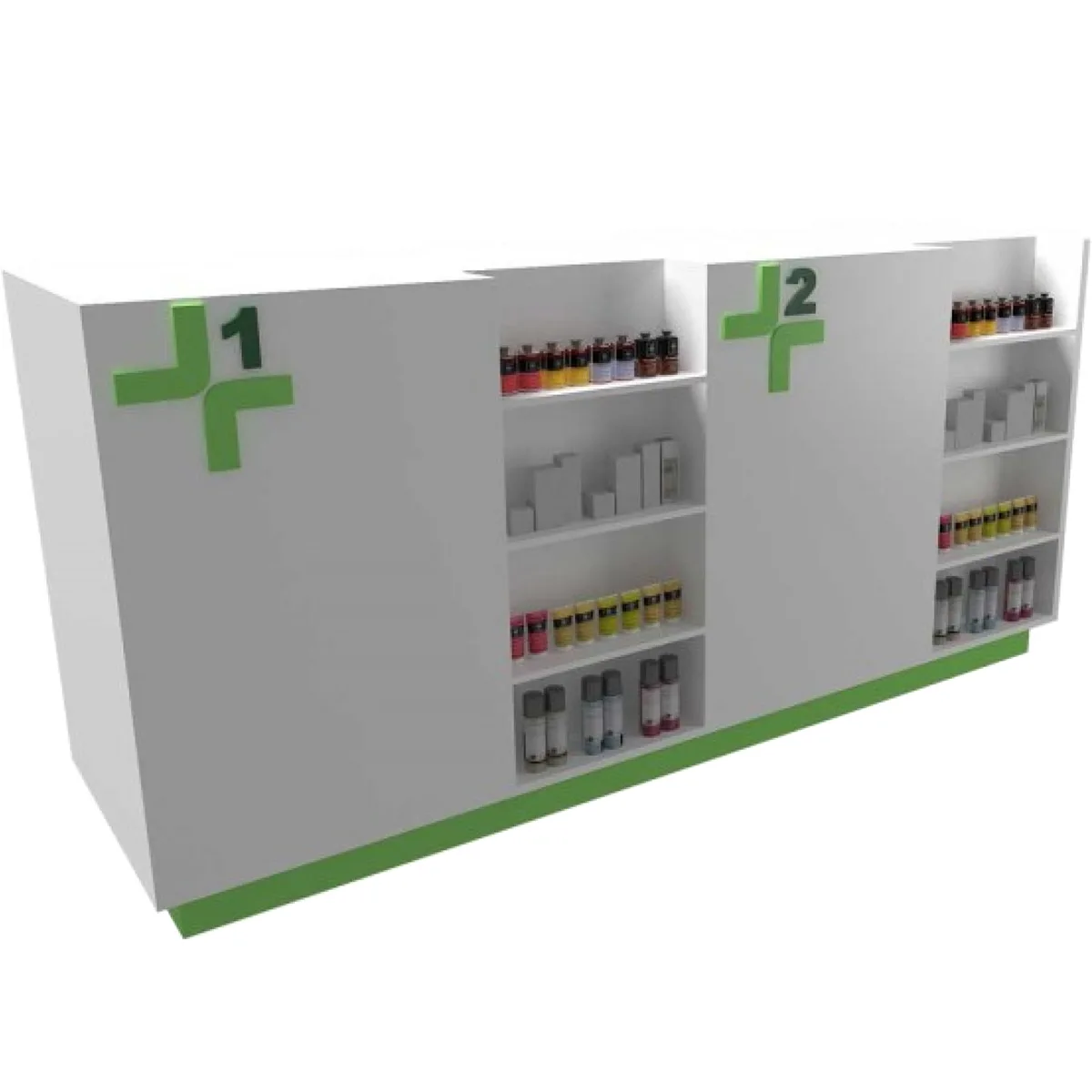 Ο πάγκος φαρμακείου Πήγασος αποτελεί μία ολοκληρωμένη λύση που συνδυάζει πάγκο πωλήσεων και ραφιέρα σε μία ενιαία, κομψή κατασκευή. Ιδανικός για φαρμακεία, καταστήματα λιανικής και χώρους εξυπηρέτησης, προσφέρει πρακτικότητα, οργάνωση και εντυπωσιακή παρουσίαση προϊόντων.